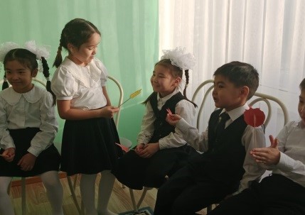 Қатысушыларға кішкене жүрекшелер таратылады.